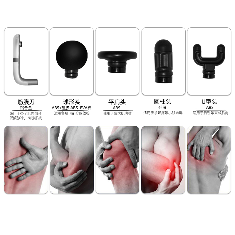 2. 標準配置:主機+筋膜刀+4種模頭+充電線+包裝