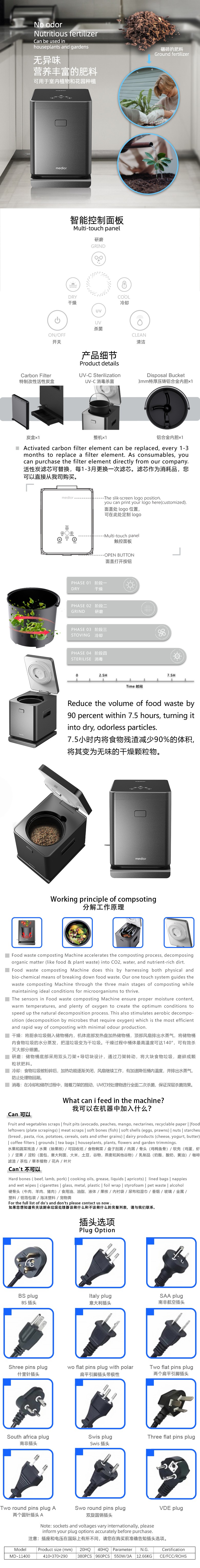 食物垃圾堆肥機(jī)加速堆肥過程,將有機(jī)物質(zhì)(如食物和植物垃圾)分解成二氧化碳,水和營養(yǎng)豐富的污垢。