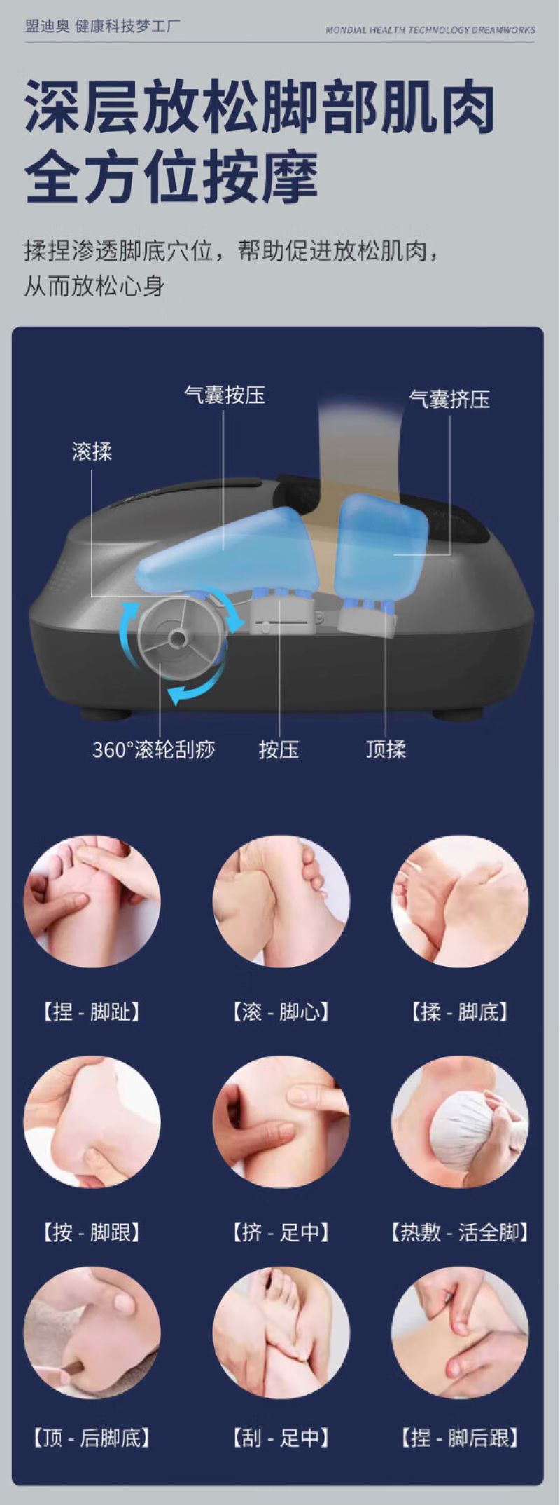 腳底按摩機(jī)(腳趾),刮擦(鞋底),Shiatus(腳跟)按摩(多模式,多強(qiáng)度)