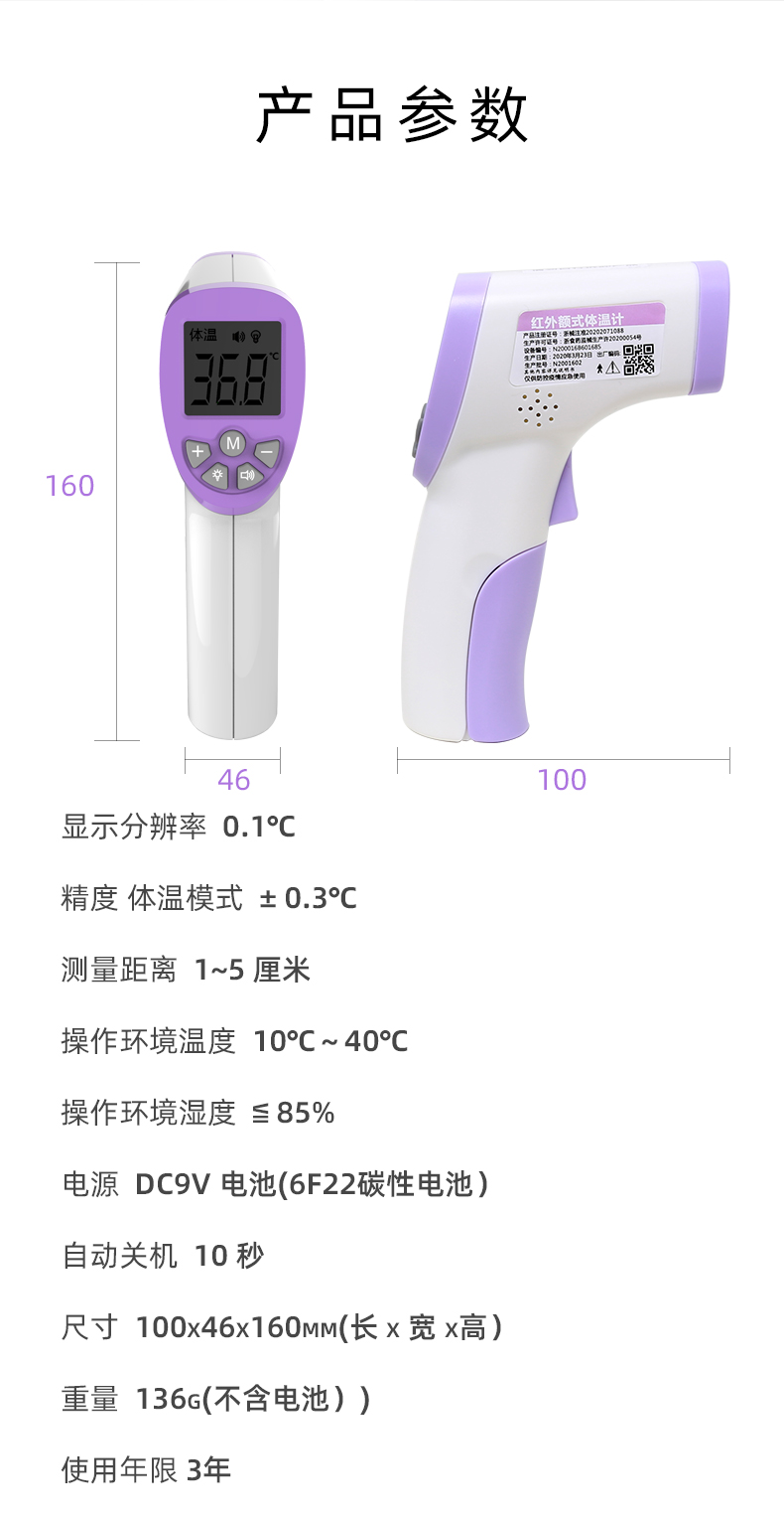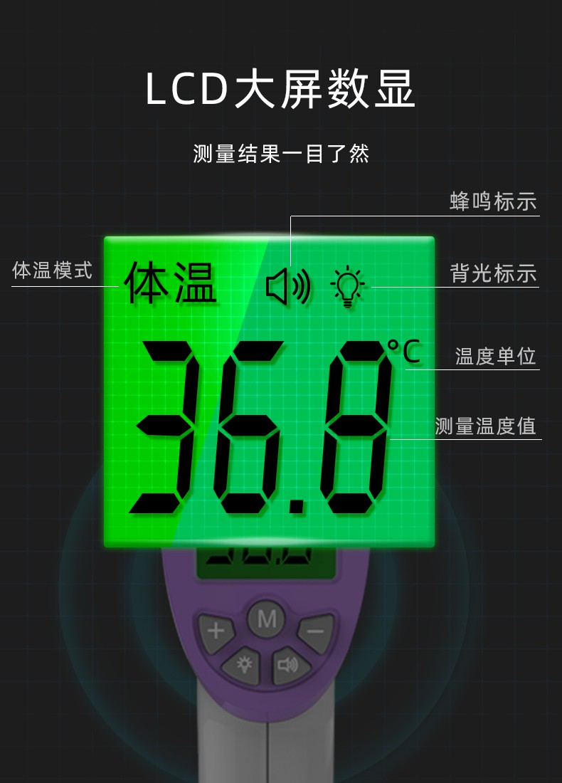 一秒的精確溫度測量。 高密度紅外傳感器,自動溫度測量,精確計算