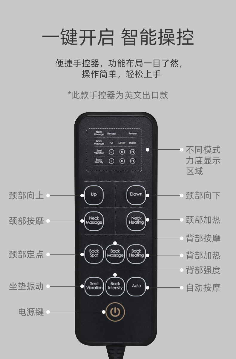 單震動(dòng)座椅按摩,3級(jí)強(qiáng)度(單/雙震動(dòng)可定制)