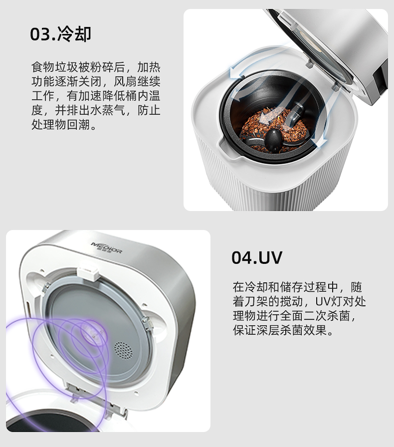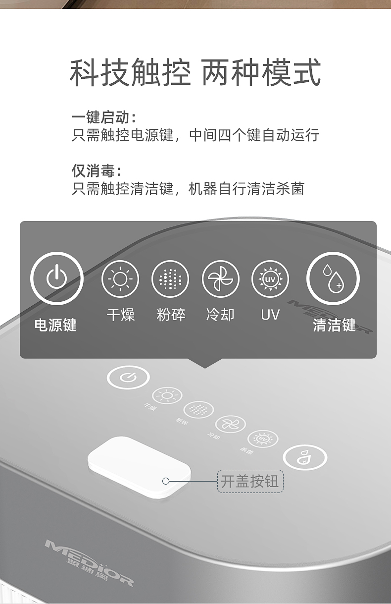 冷卻:研磨模式完成后,自動(dòng)啟動(dòng)冷卻模式。 電源按鈕和 干燥,研磨,冷卻燈及 紫外線燈點(diǎn)亮。 您可以在冷卻模式下設(shè)置UV周期。